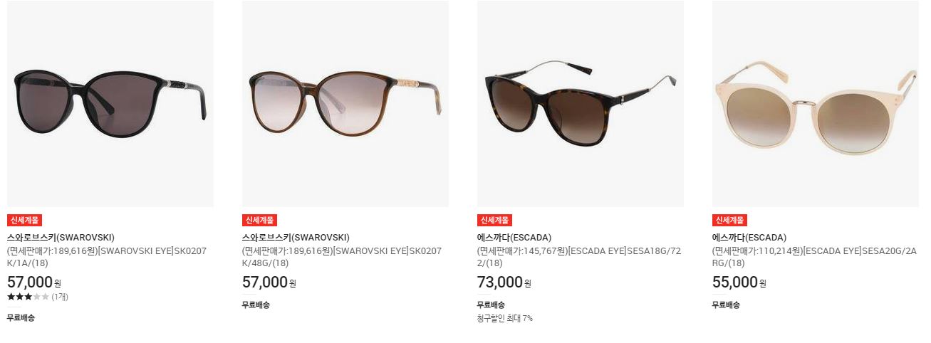 할인 품목 : 선글라스, 가방, 시계, 의류 등