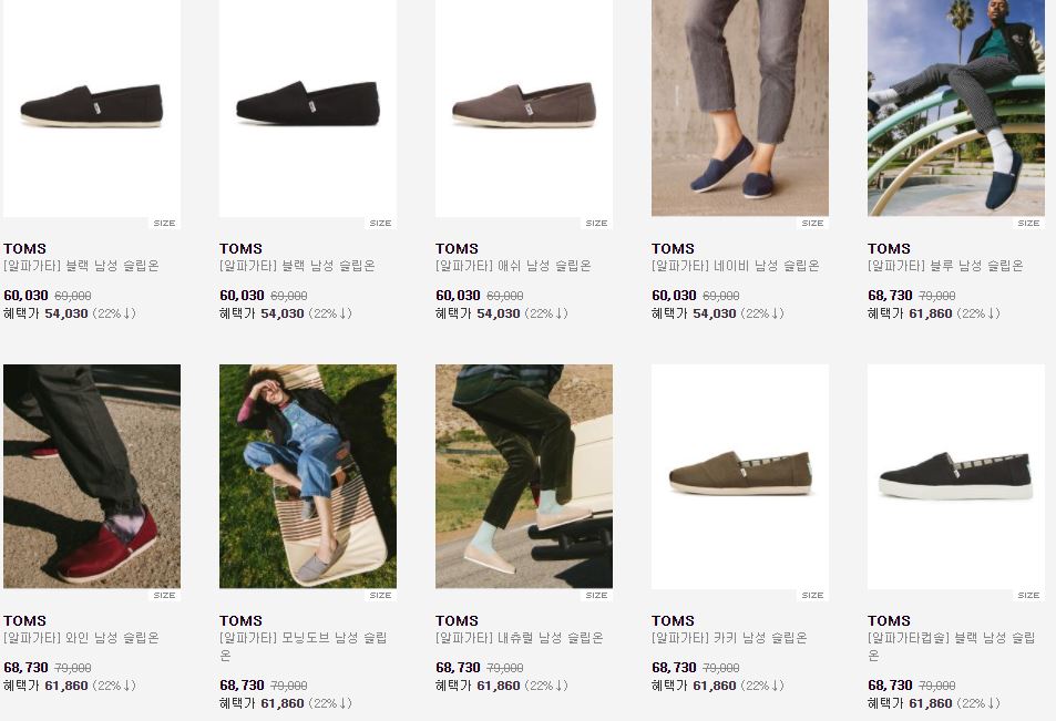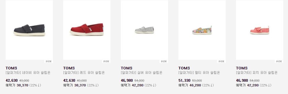 탐스 다양한 제품을 할인 판매하네요.