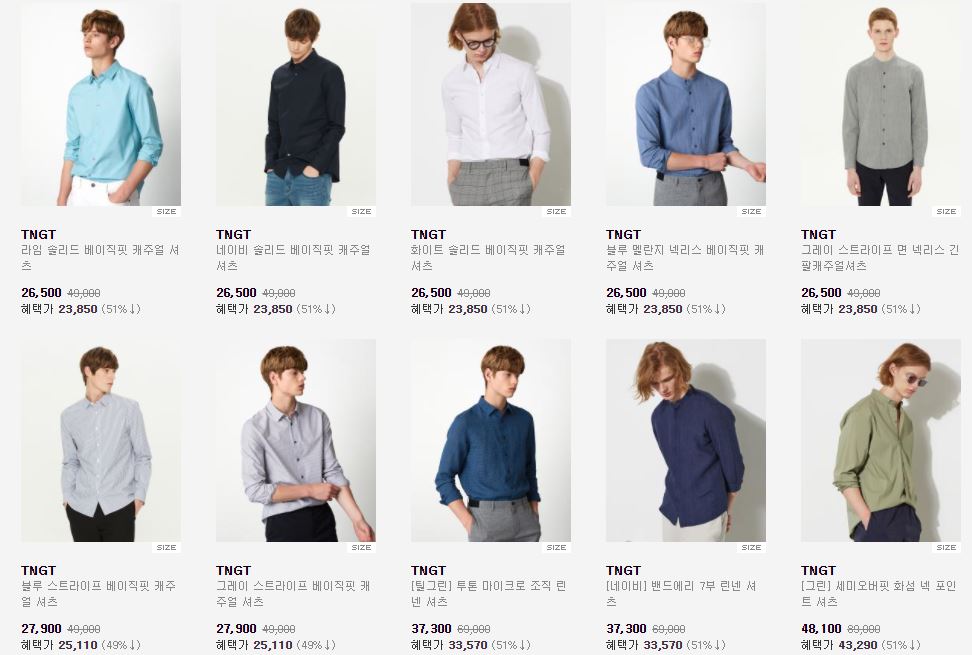 할인 품목 : 자켓, 셔츠, 티셔츠, 팬츠 등