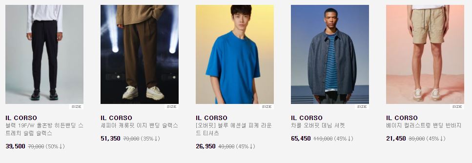 할인 품목 : 자켓, 셔츠, 티셔츠, 팬츠 등
