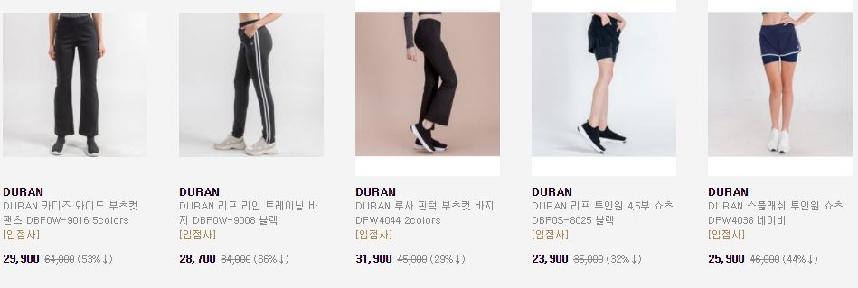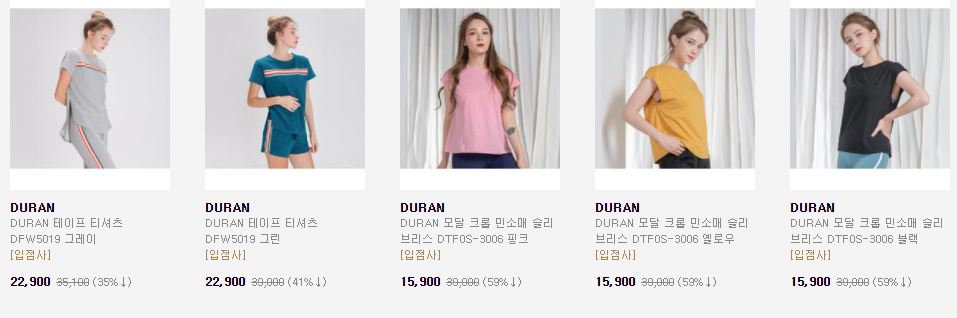 할인 품목 : 브라탑, 레깅스, 티셔츠 등
