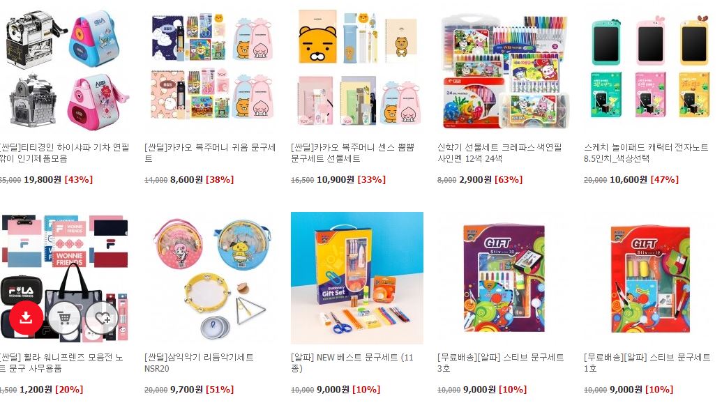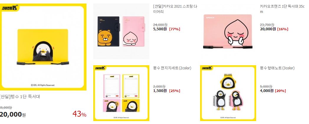 할인 품목 : 노트, 필구도구, 독서대 등