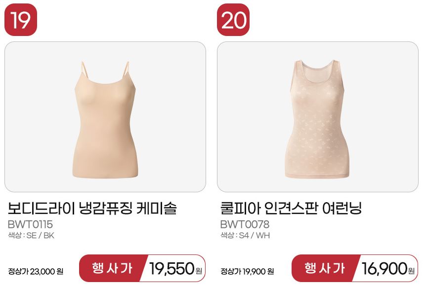 할인 품목 : 티셔츠, 원피스, 런닝 등