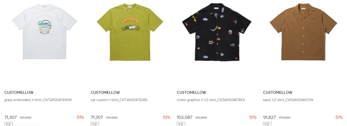 커스텀멜로우 다양한 제품을 할인 판매하네요.