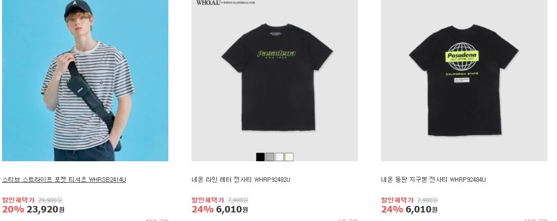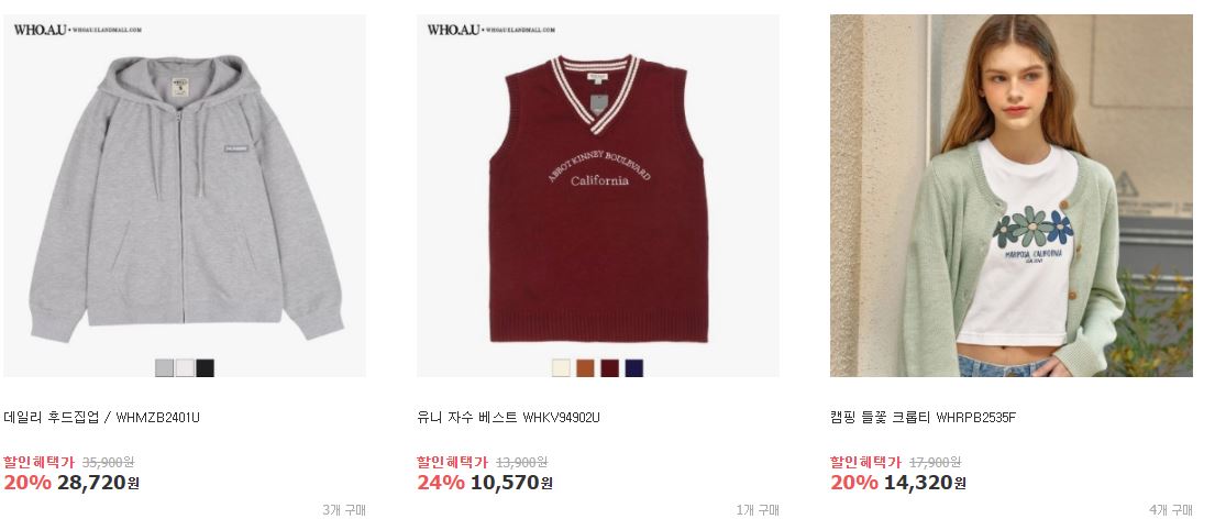 할인 품목 : 티셔츠, 스웨터, 가디건 등