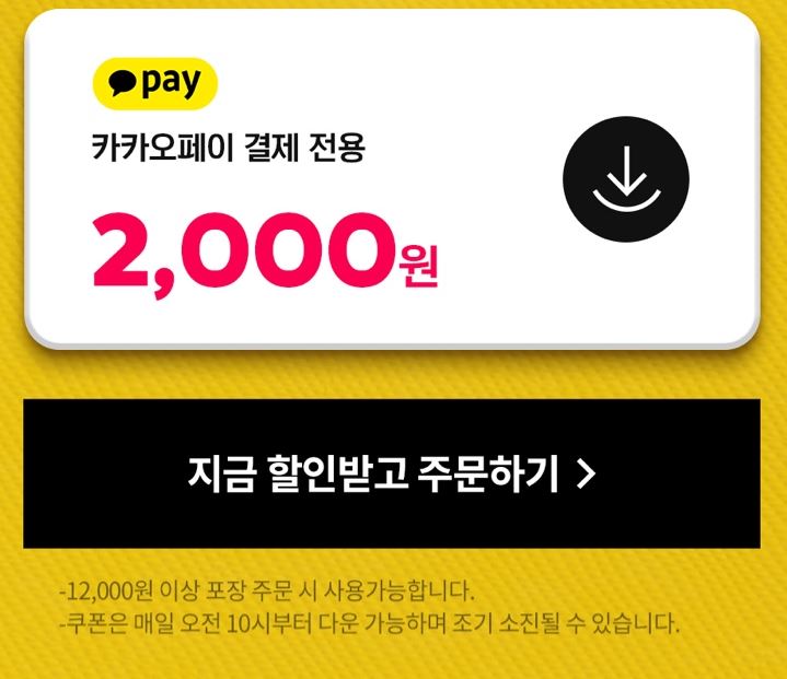 12000원 이상 포장 주문 시 카카오페이 2000원 할인