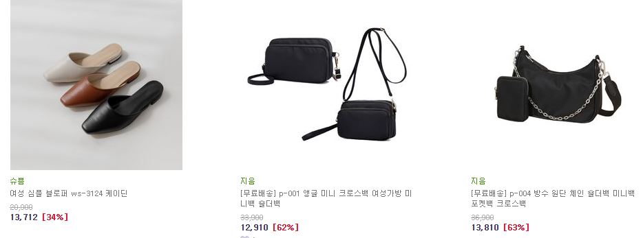 할인 품목 : 마스크, 생활용품, 가방 등