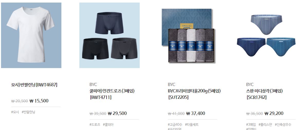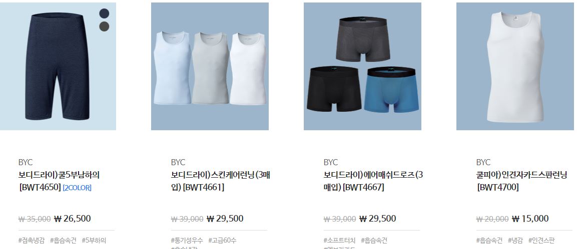할인 품목 : 런닝, 팬티 등