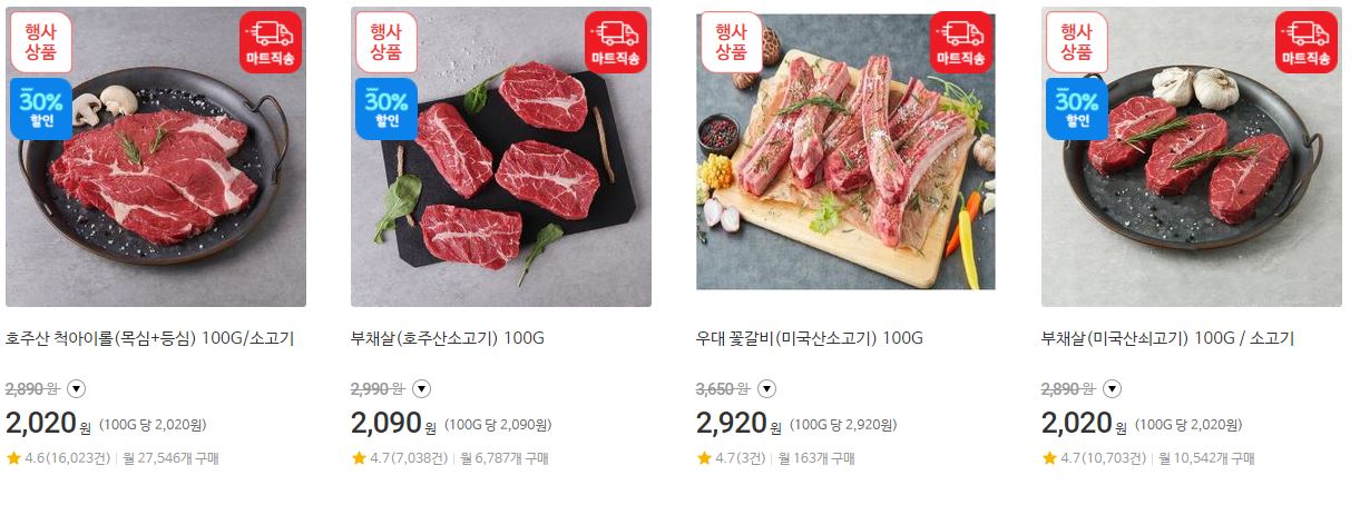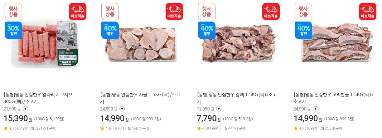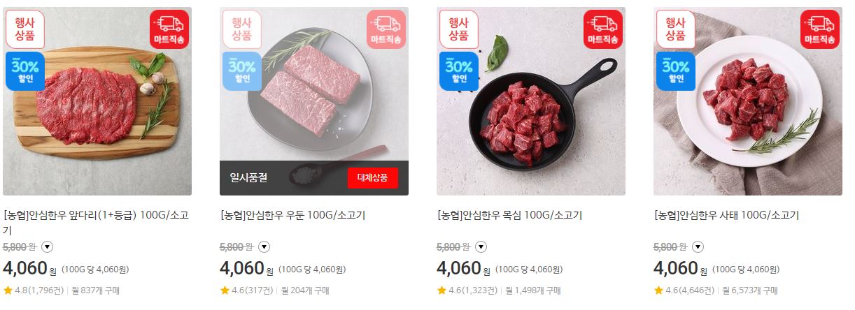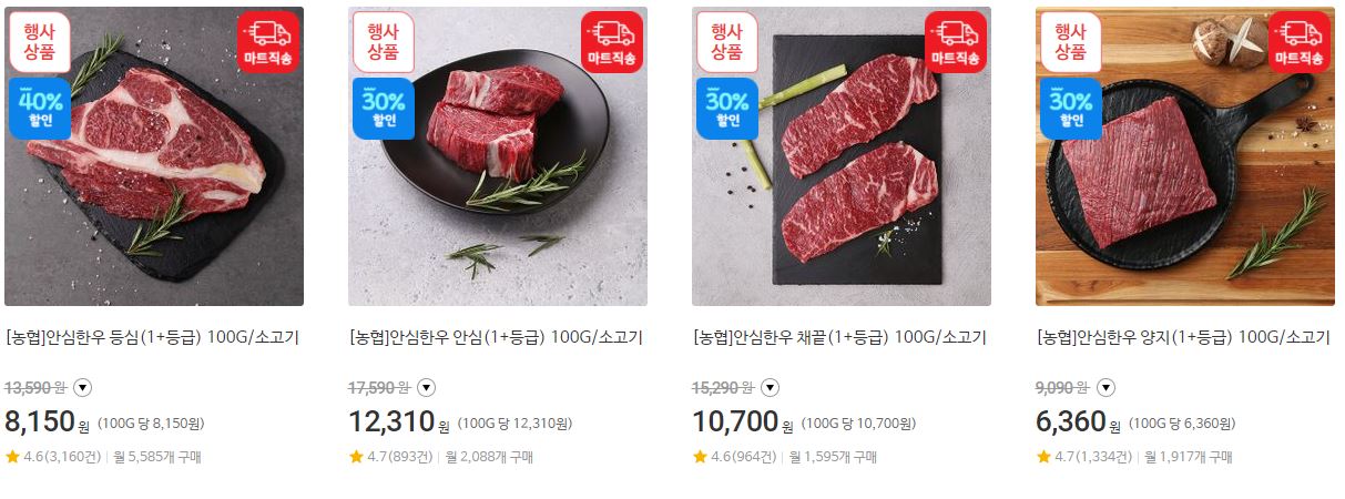 할인 품목 : 등심, 안심, 양지 등