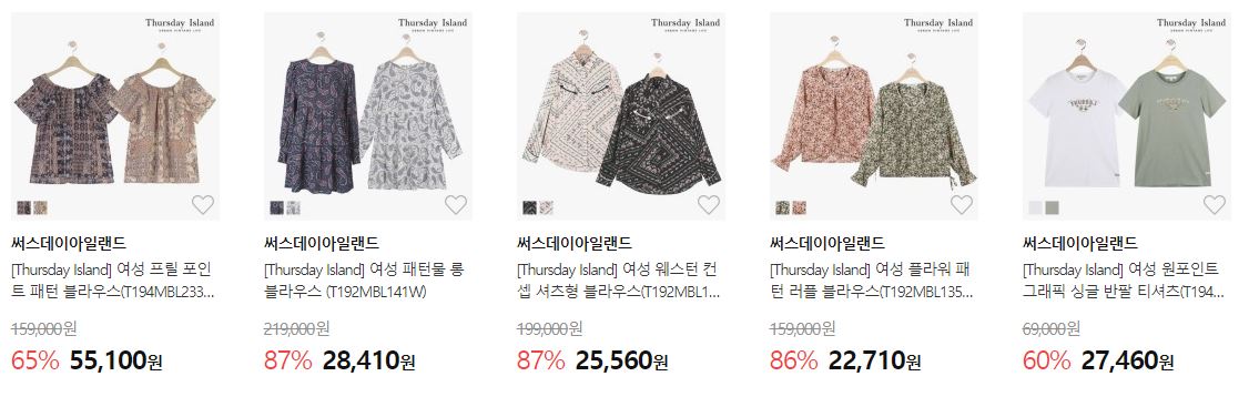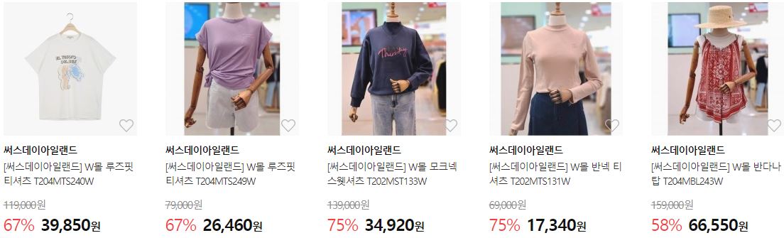 썰스데이아일랜드 다양한 제품을 할인 판매하네요.