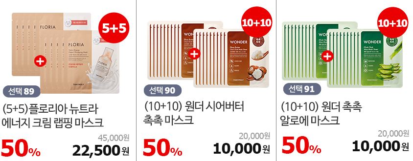 할인 품목 : 토너, 마스크, 아이크림 등