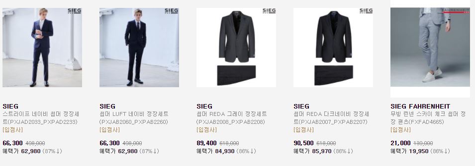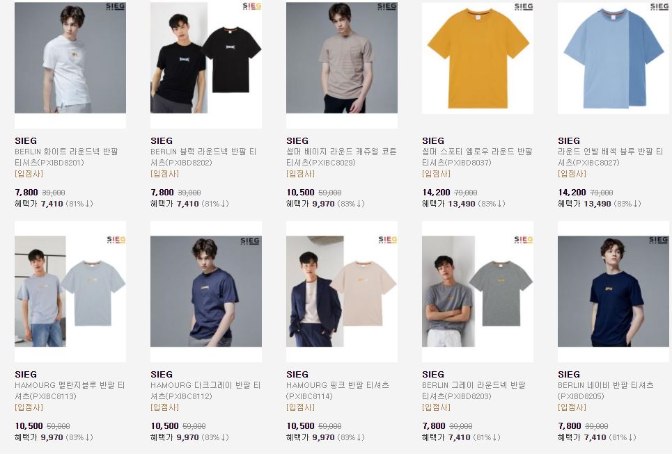 할인 품목 : 티셔츠, 팬츠, 셔츠 등