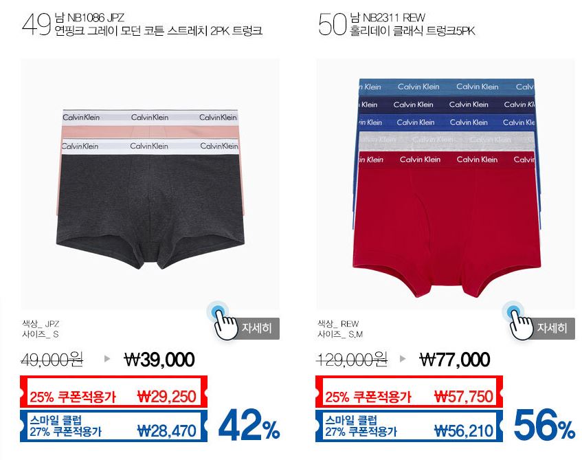 캘빈클라인 다양한 제품을 할인 판매하네요.