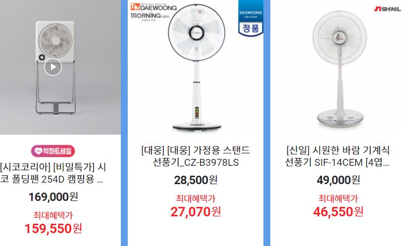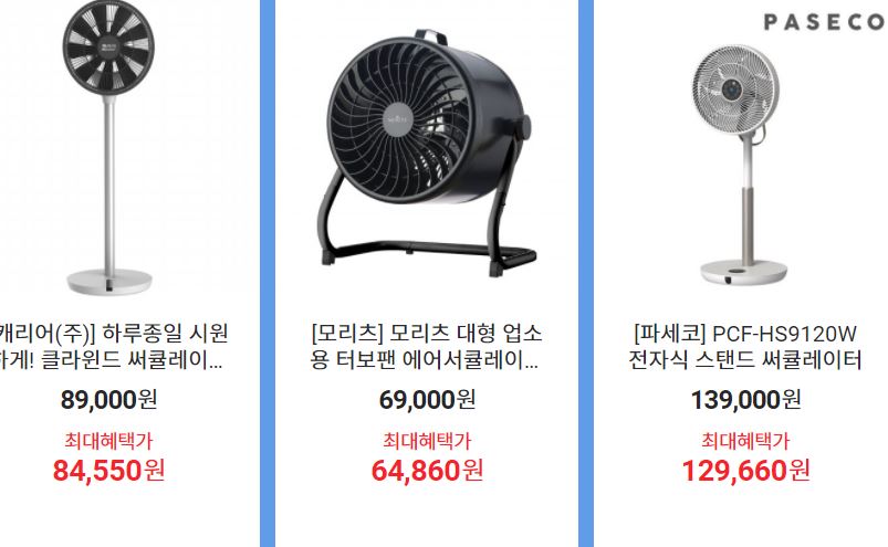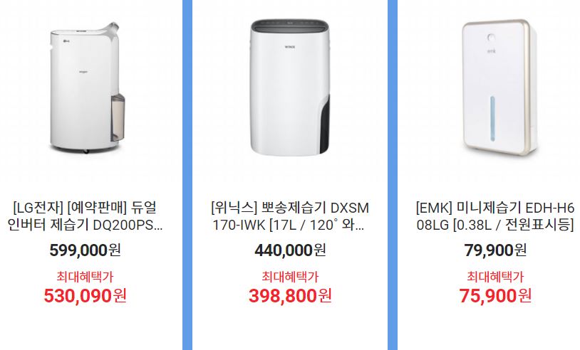 할인 품목 : 에어컨, 선풍기, 제습기 등