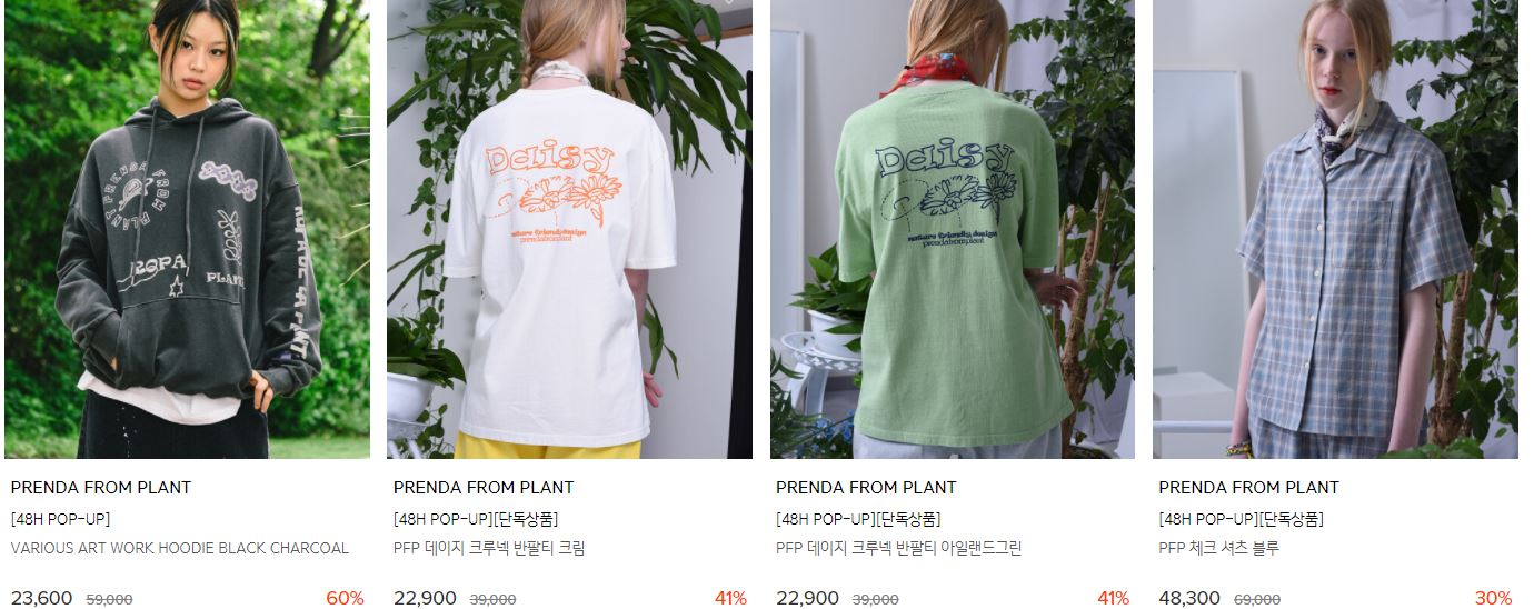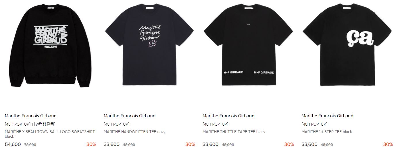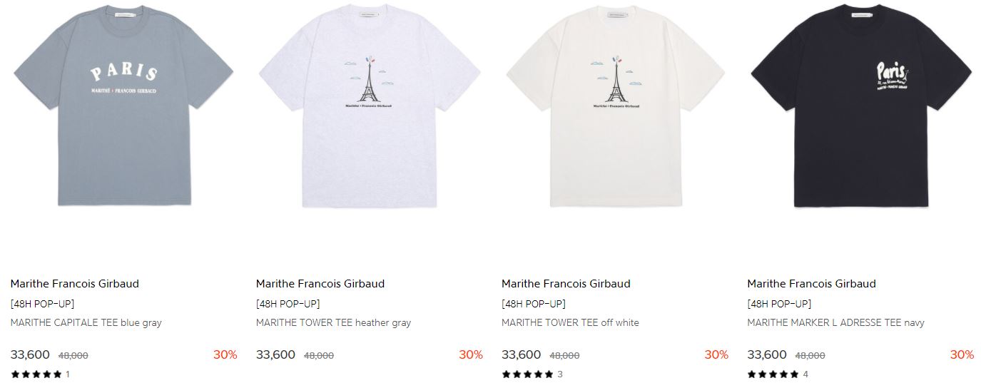 할인 품목 : 티셔츠, 팬츠 등