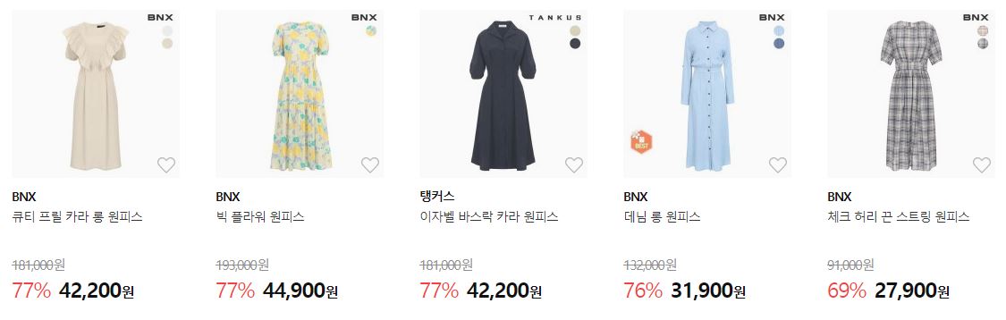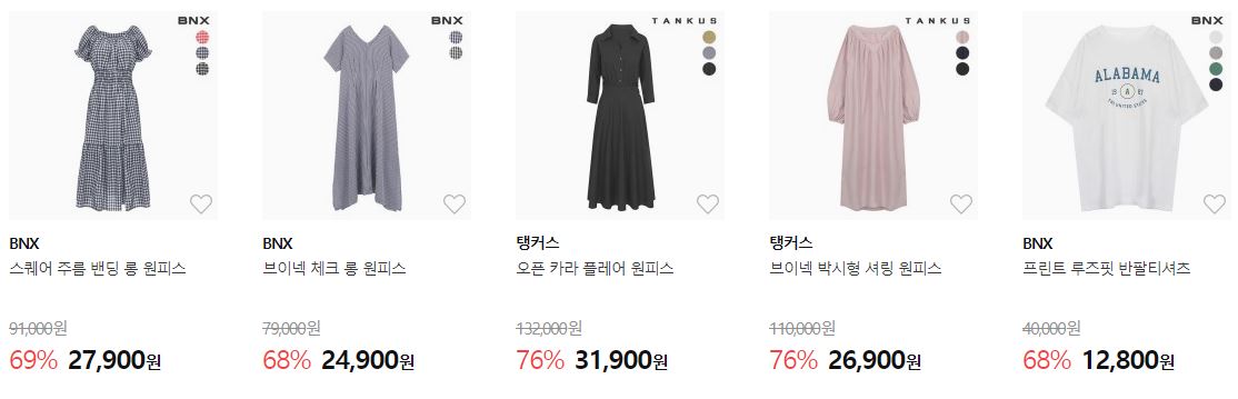 할인 품목 : 원피스, 티셔츠, 팬츠 등
