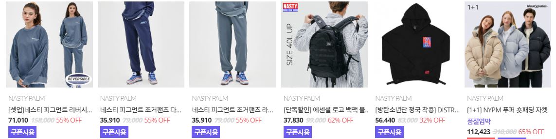 할인 품목 : 티셔츠, 팬츠 등