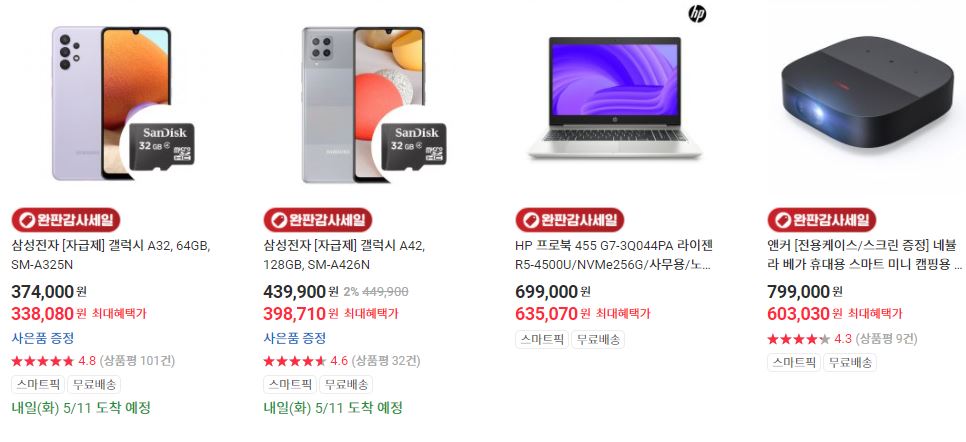 할인 품목 : 휴대폰, 노트북, 에어컨, TV 등