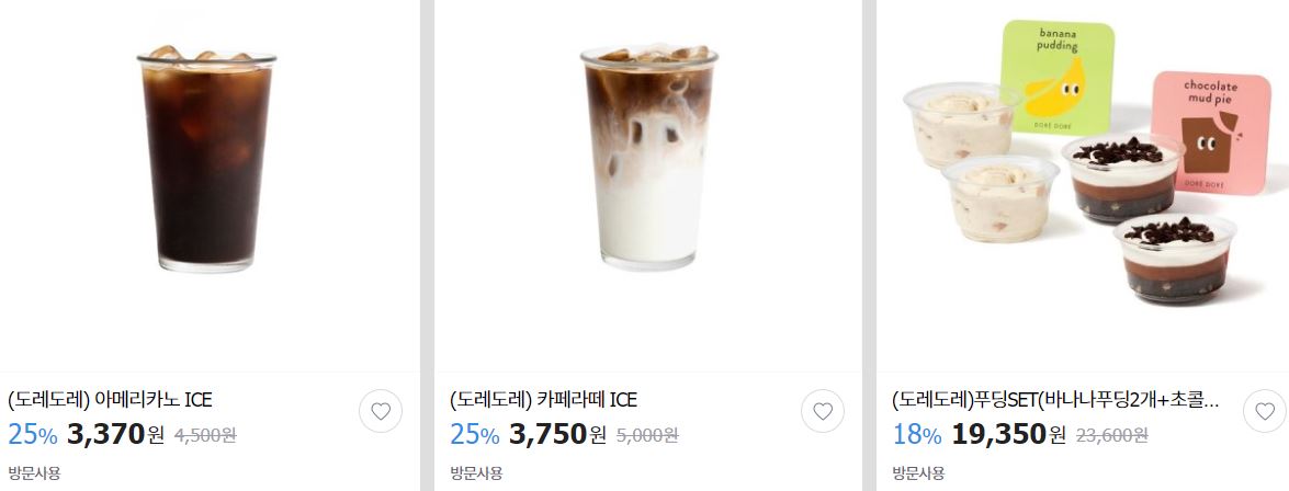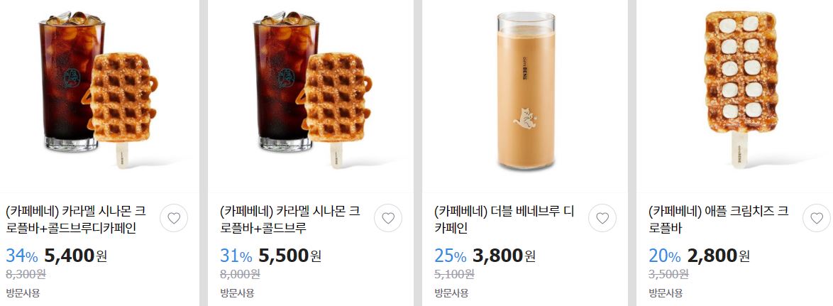 할인 브랜드 : 파리바게뜨, 던킨도너츠, 카페베네 등