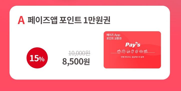 페이즈 앱포인트 1만원권 15% 할인 정보 포스팅입니다.