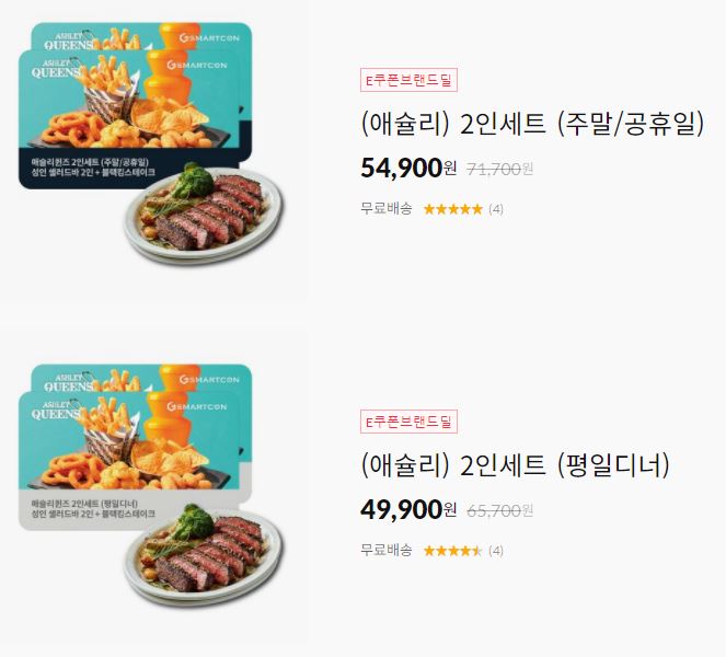 할인 브랜드 : 버거킹, 배스킨라빈스, 애슐리 등