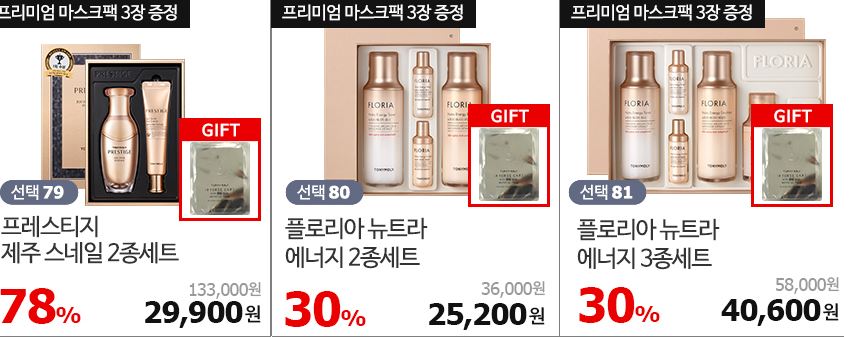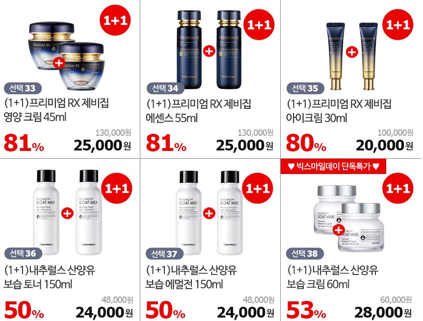 할인 품목 : 수분로션, 에센스, 토너 등
