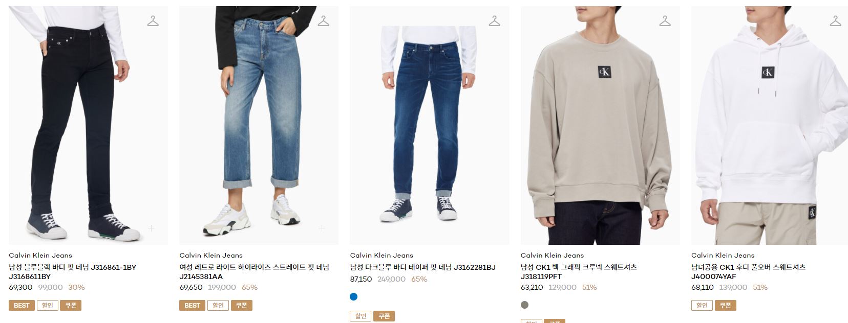 할인 품목 : 티셔츠, 팬츠, 자켓 등