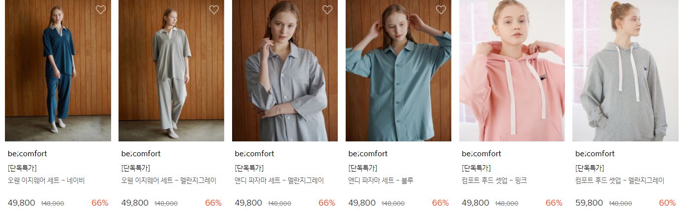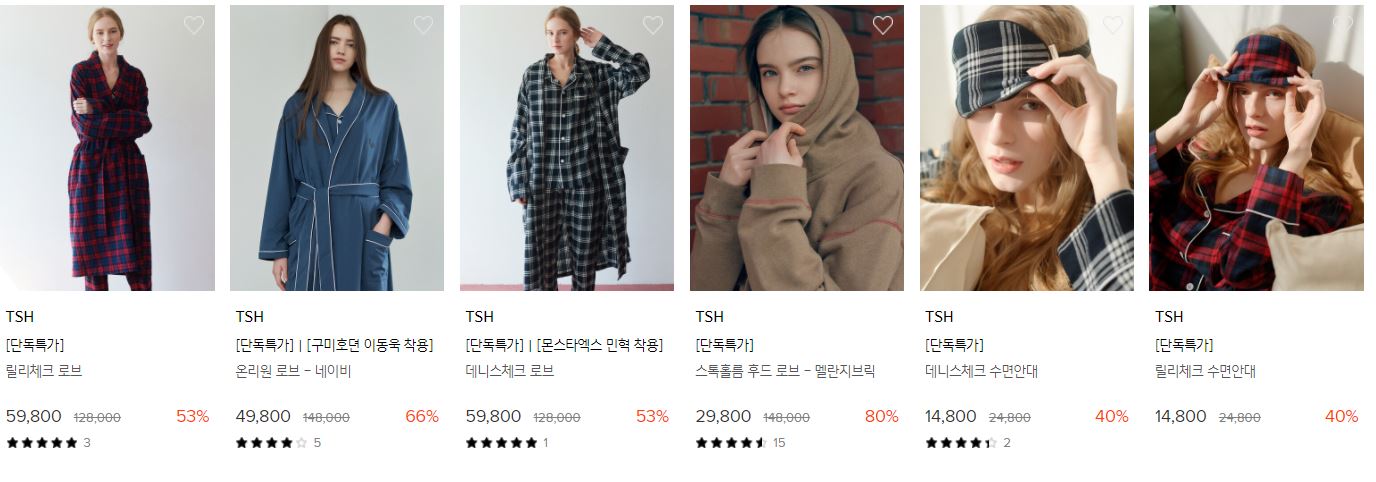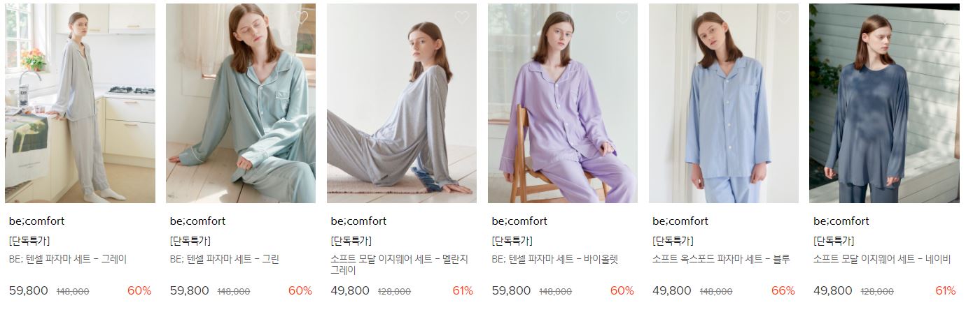 할인 품목 : 파자마세트, 로브 등