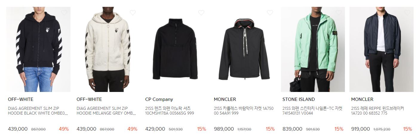 할인 품목 : 티셔츠, 팬츠, 자켓 등