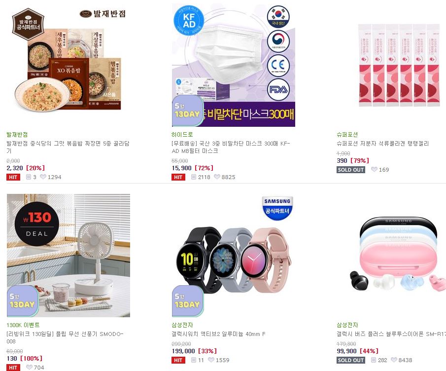 할인 품목 : 마스크, 가전, 식품 등