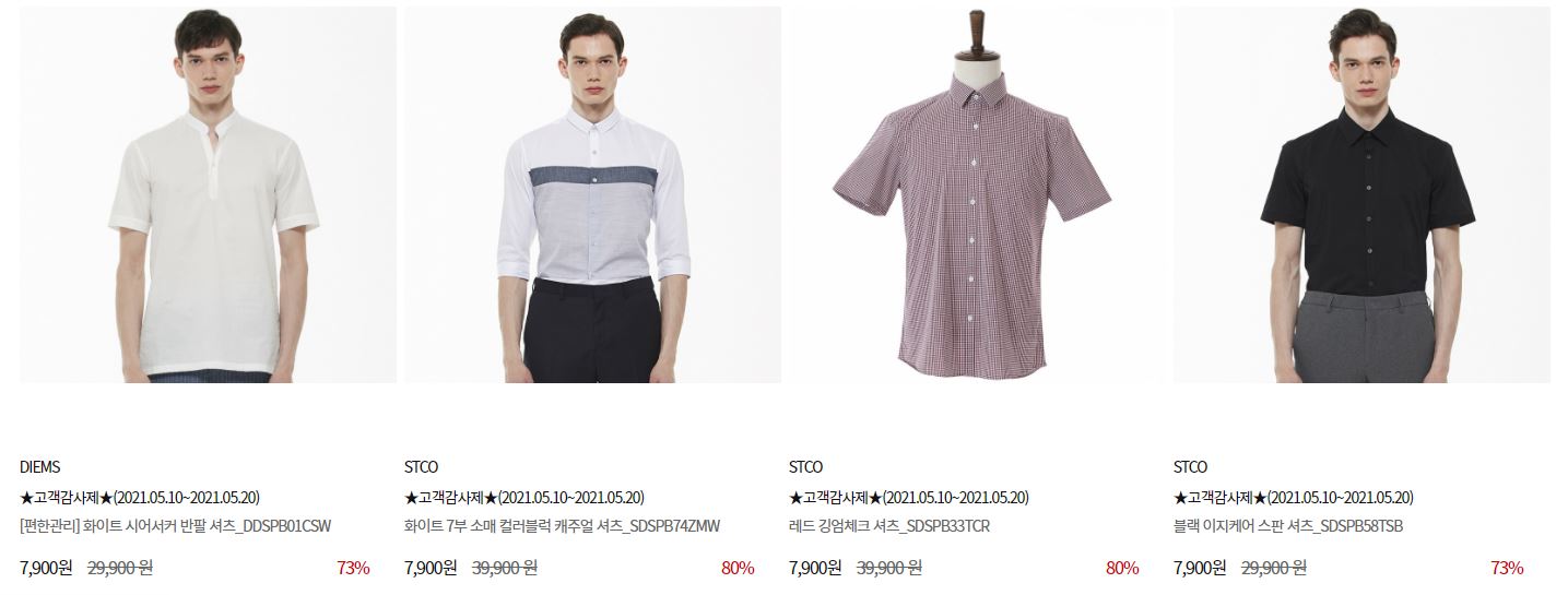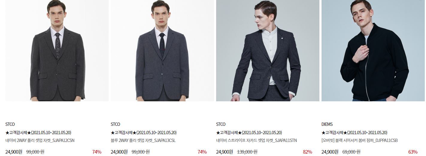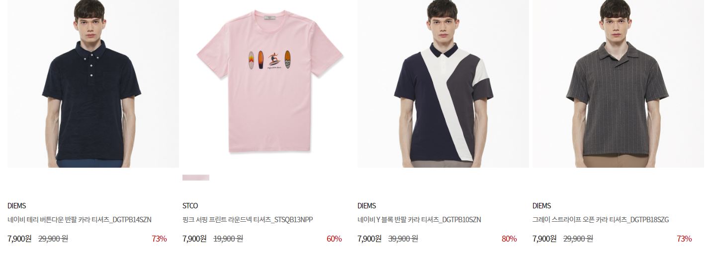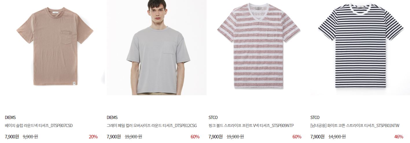 할인 품목 : 티셔츠, 자켓, 팬츠 등