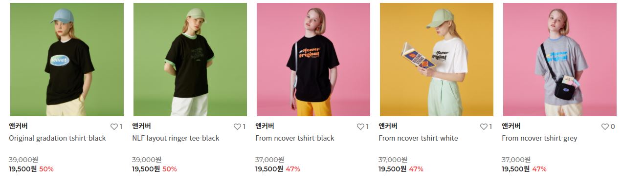 할인 품목 : 티셔츠, 팬츠 등