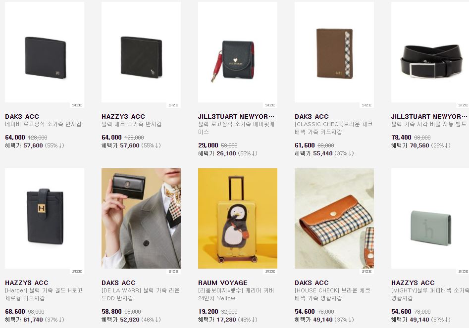 할인 품목 : 지갑, 가방, 우산 등