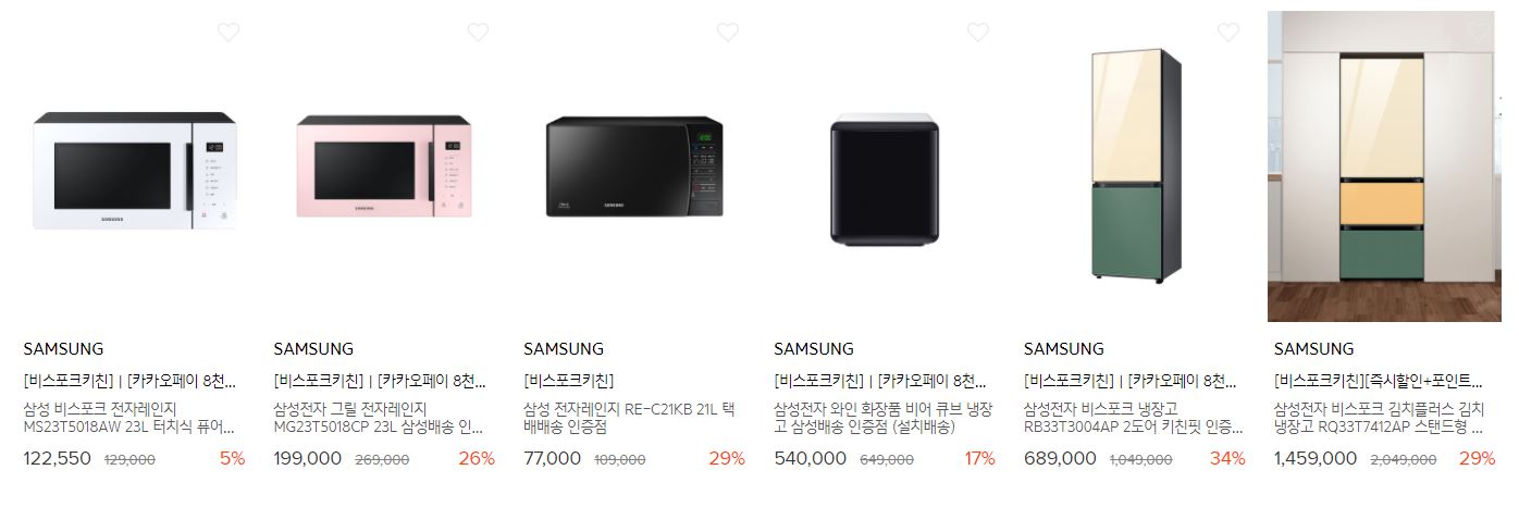 할인 품목 : 전자레인지, 냉장고, 에어드레서 등
