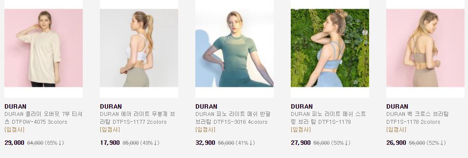 할인 품목 : 티셔츠, 팬츠 등