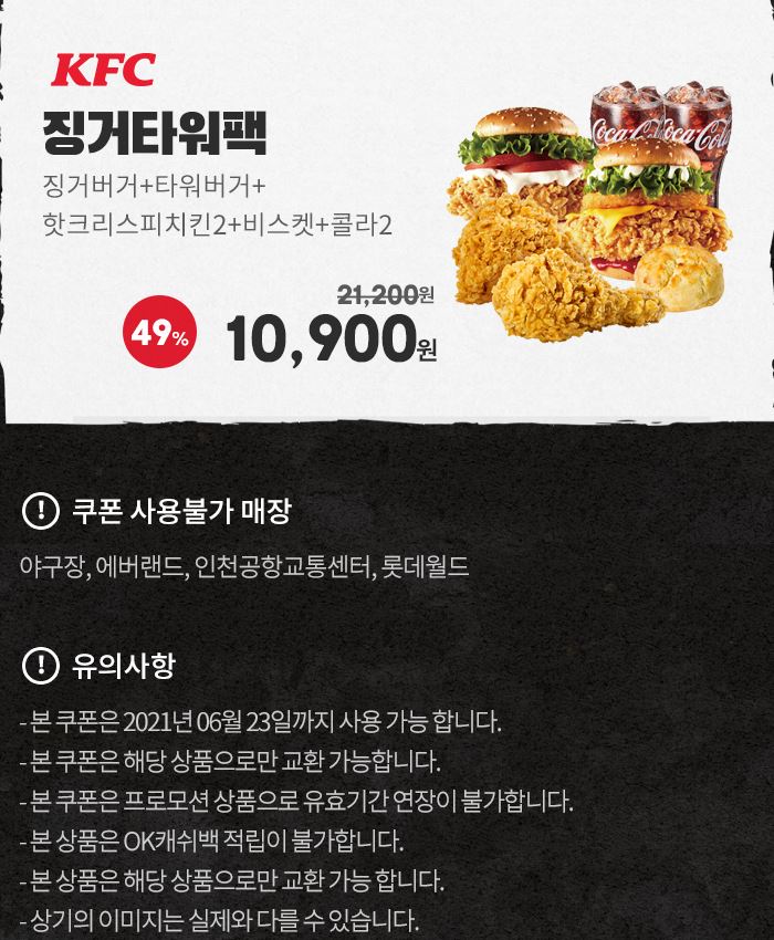 할인 품목 : 징거타워팩, 1인치킨반반세트 등