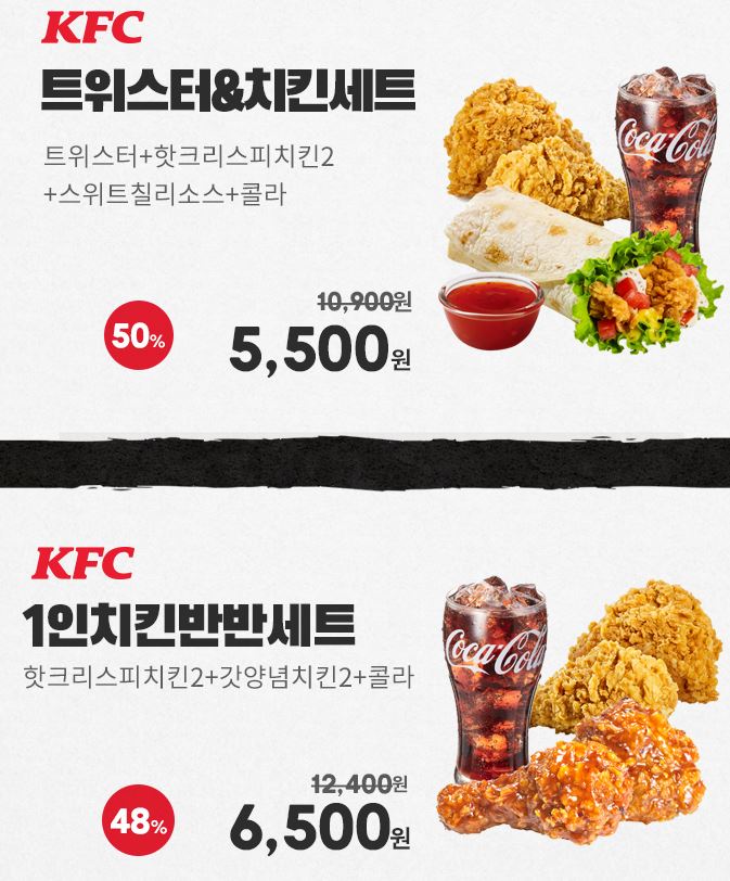 KFC 인기메뉴 3종 최대 50% 할인 정보 포스팅입니다.