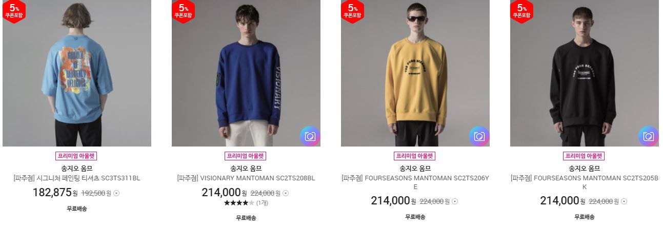 할인 품목 : 점퍼, 티셔츠 등
