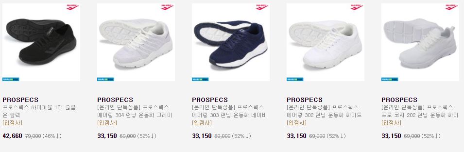 프로스펙스 다양한 제품을 할인 판매하네요.