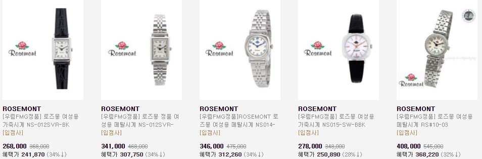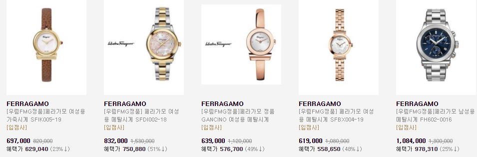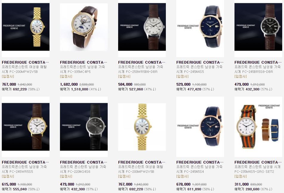 할인 브랜드 : 프레드릭콘스탄트, 로즈몽, 구찌 등