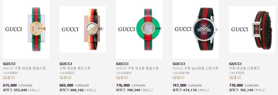 할인 브랜드 : 프레드릭콘스탄트, 로즈몽, 구찌 등