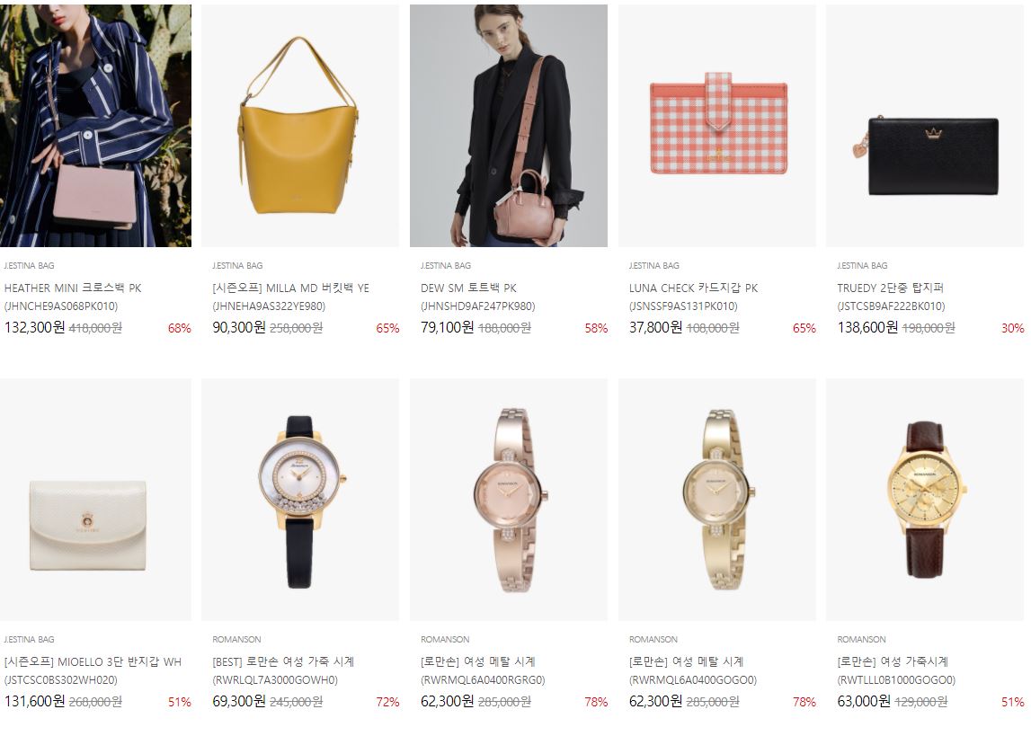 할인 품목 : 목걸이, 귀걸이, 가방 등