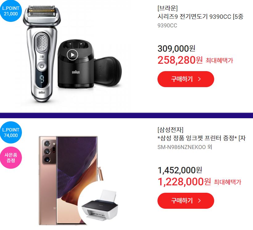 할인 품목 : 노트북, 휴대폰, 에어컨 등