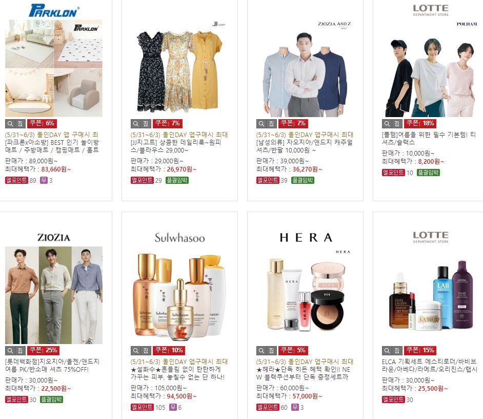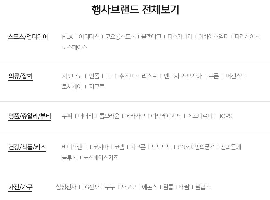 할인 품목 : 의류, 가전, 화장품 등