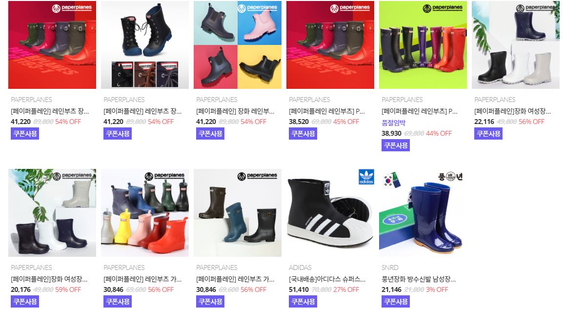 할인 품목 : 레인부츠, 슬리퍼, 샌들 등