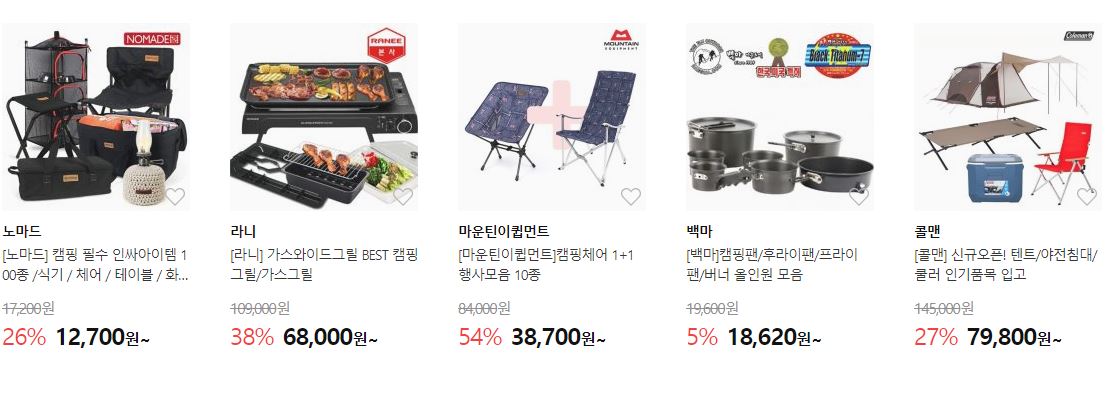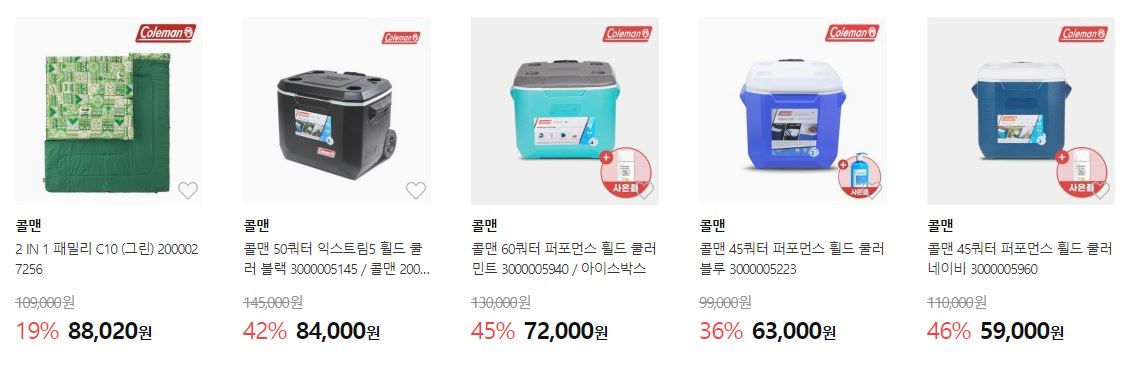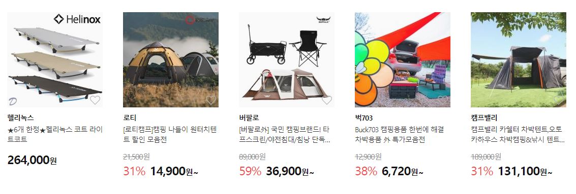 할인 품목 : 텐트, 의자, 아이스박스 등