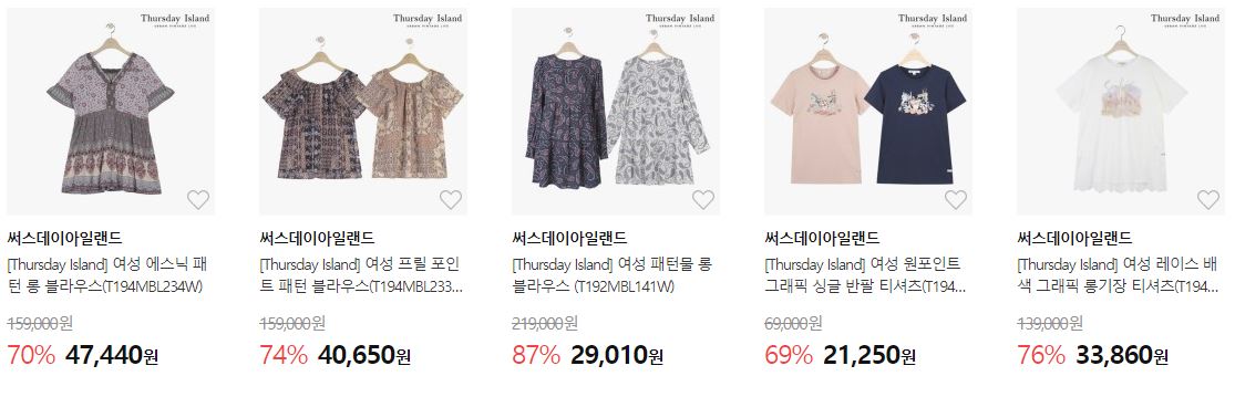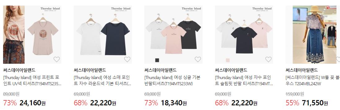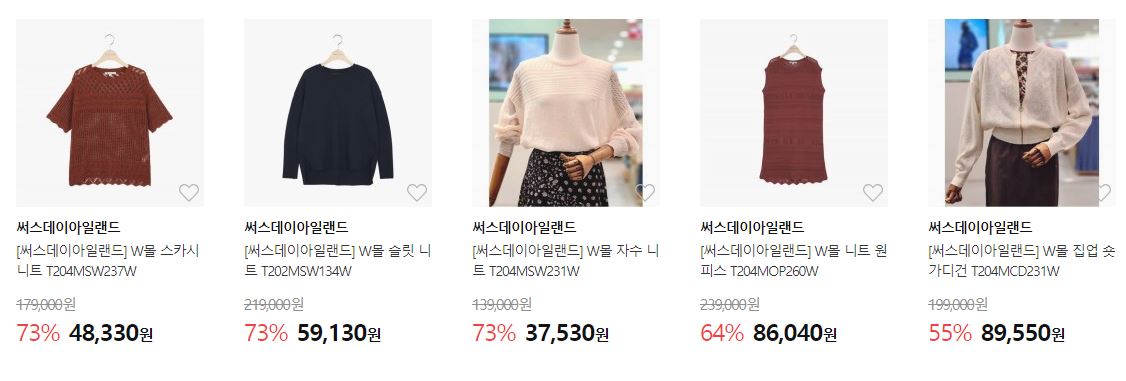썰스데이아일랜드 다양한 제품을 할인 판매하네요.