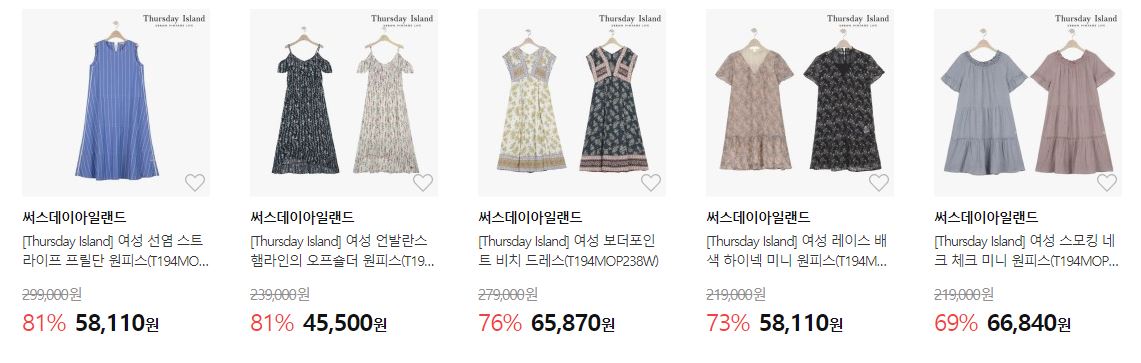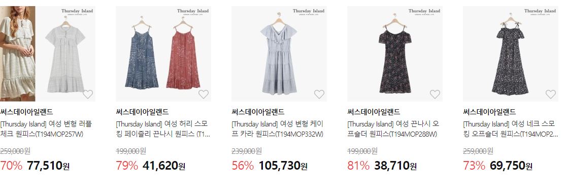 할인 품목 : 원피스, 티셔츠, 스커트 등
