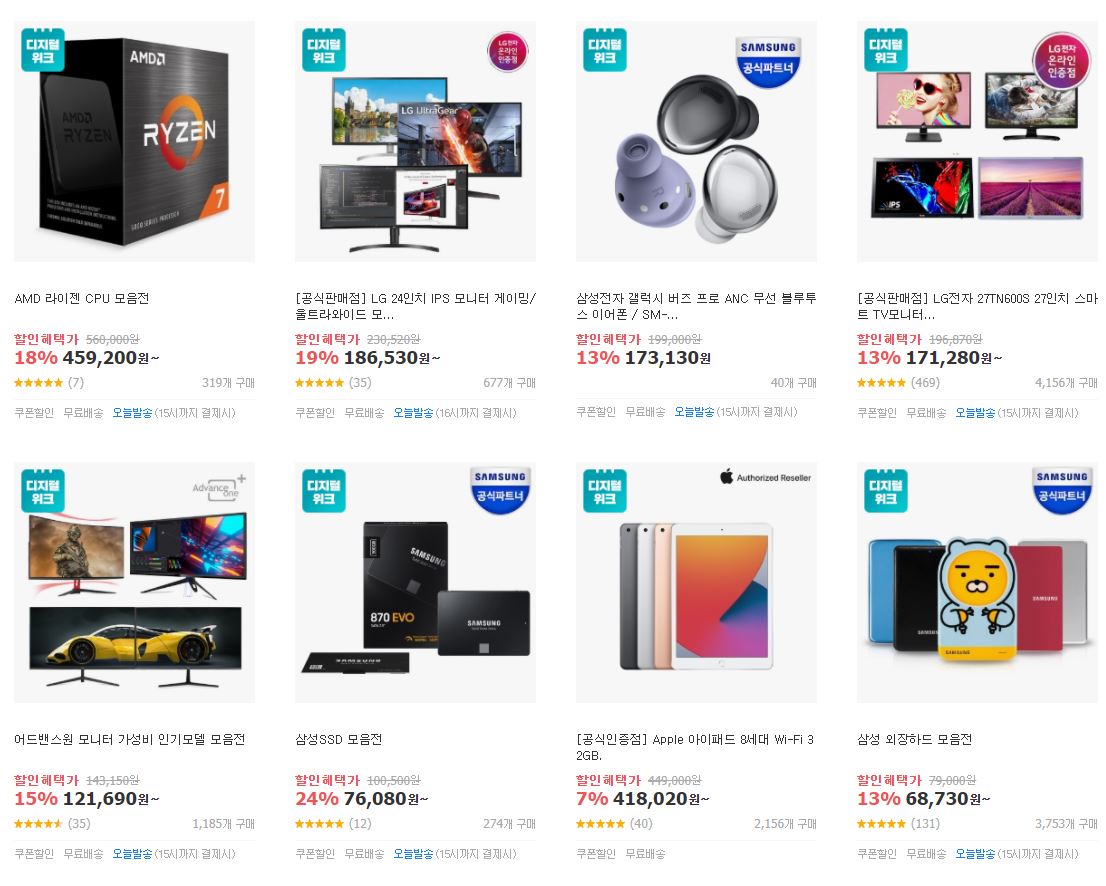 할인 품목 : 컴퓨터 부품, 노트북, 휴대폰 등