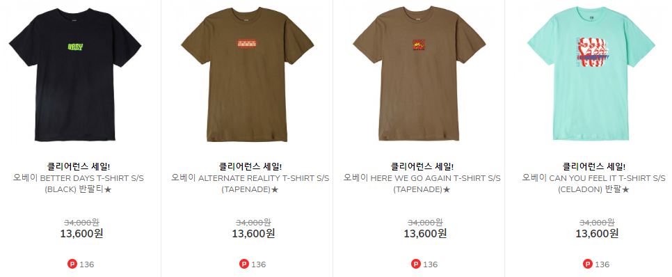 할인 품목 : 백팩, 티셔츠, 팬츠 등